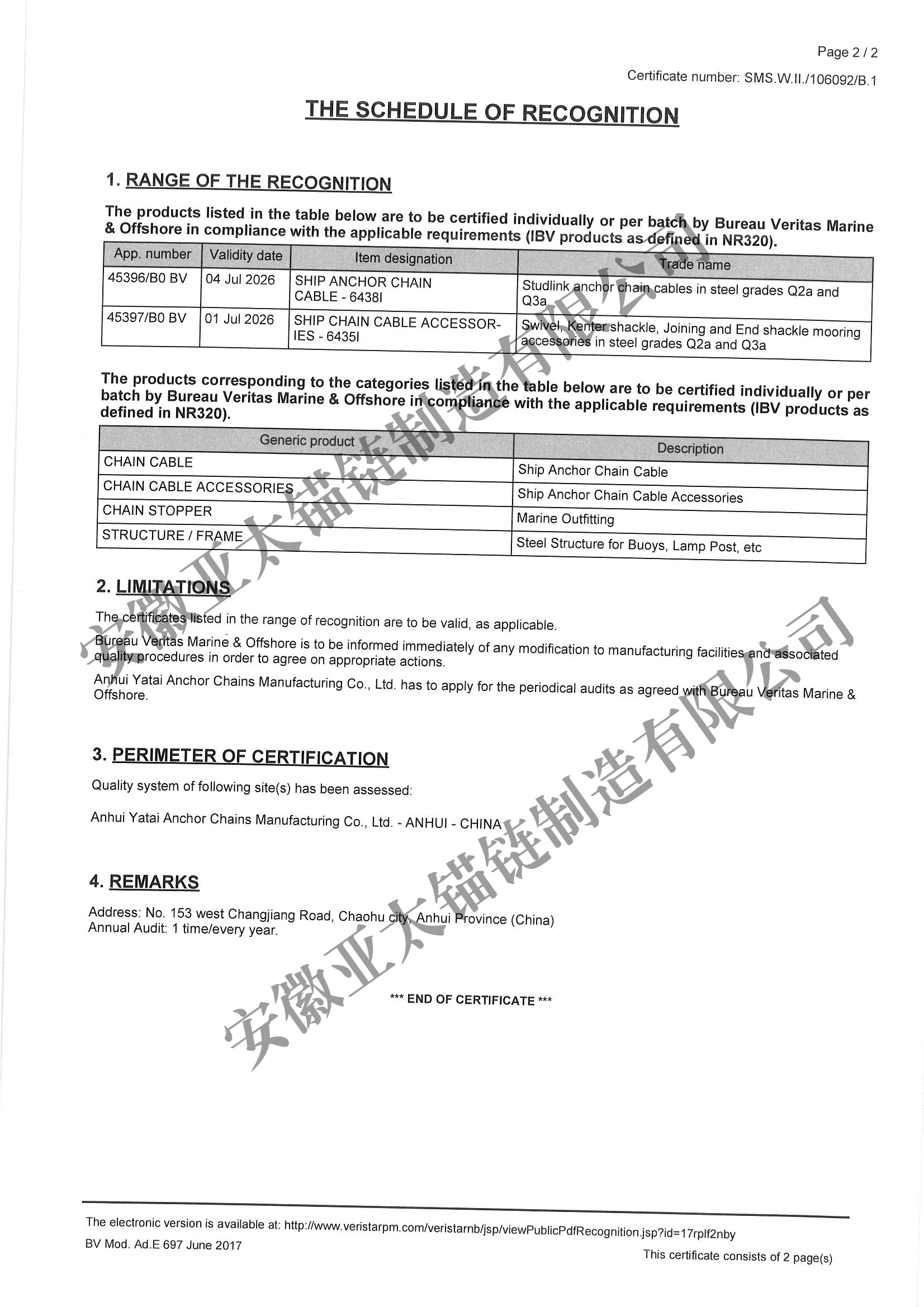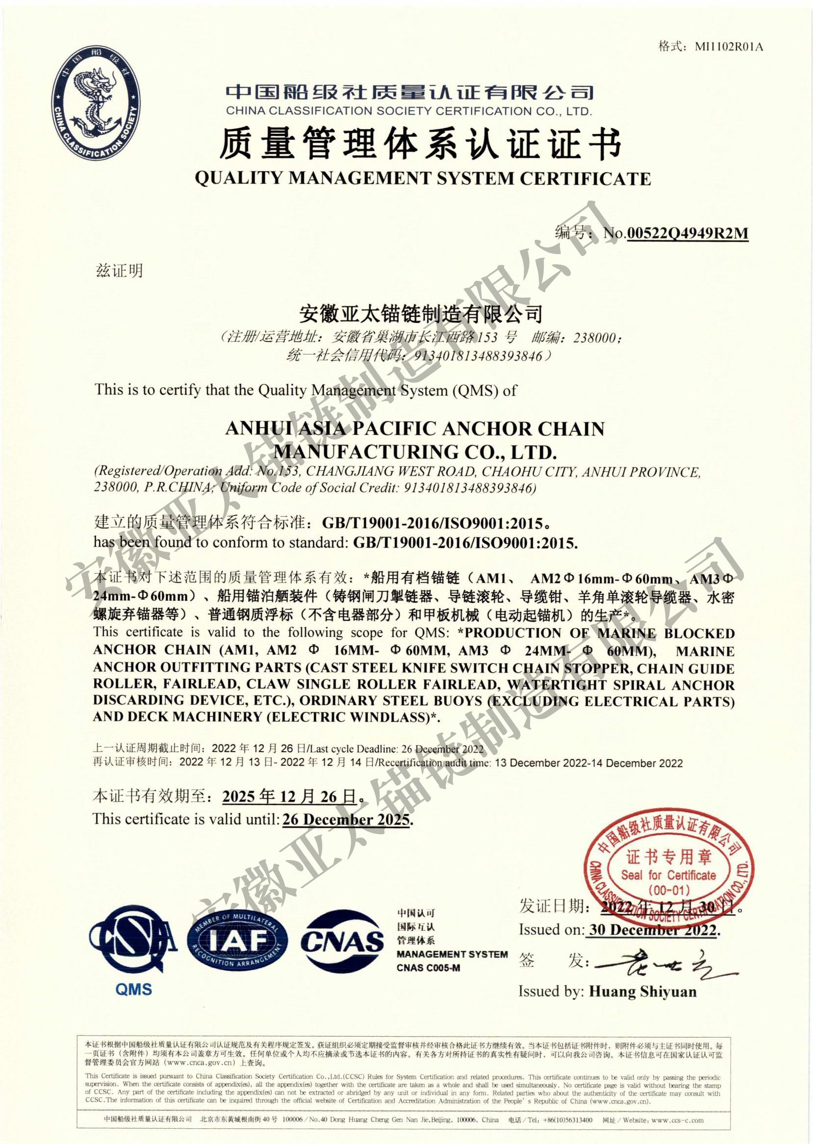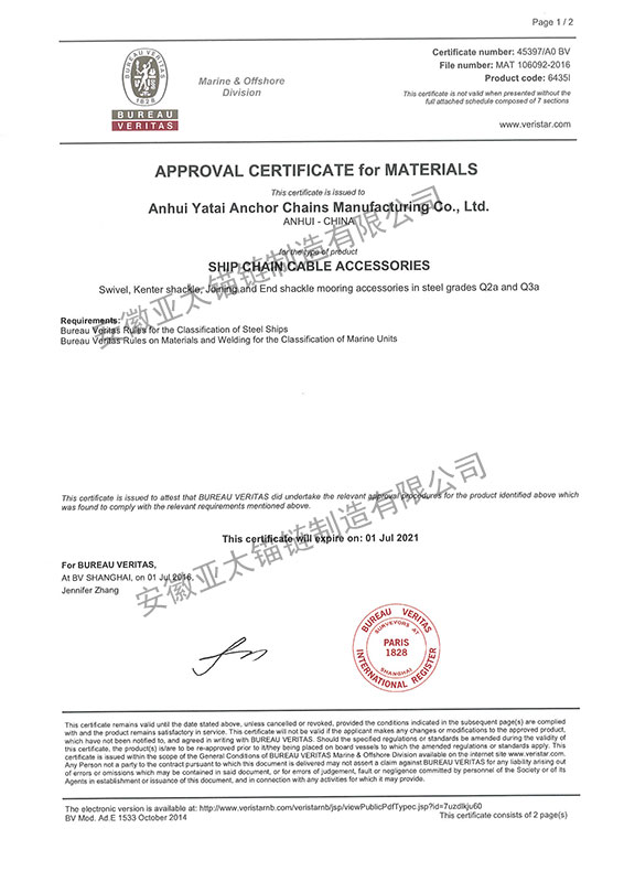 安徽亞太錨鏈制造有限公司是國家高新技術(shù)企業(yè),也是國家GB/T 549-2017《電焊錨鏈》標(biāo)準(zhǔn)的起草和制定單位之一。公司旗下設(shè)有錨鏈分廠、浮標(biāo)分廠、舾裝件分廠等多個(gè)分廠。公司專業(yè)從事φ12.5mm-φ107mm二、三級(jí)船用錨鏈、浮標(biāo)錨鏈、錨鏈附件,錨、船舶曬裝產(chǎn)品、航標(biāo)、系船浮、船型標(biāo)、多種規(guī)格海洋監(jiān)測浮標(biāo)及航標(biāo)燈等產(chǎn)品的生產(chǎn)、安裝和服務(wù)。目前公司的產(chǎn)品銷往全國各地船廠、碼頭、航標(biāo)處、航道局、海洋局,并已走上國際市場,如東南亞、中東、歐美等國家。